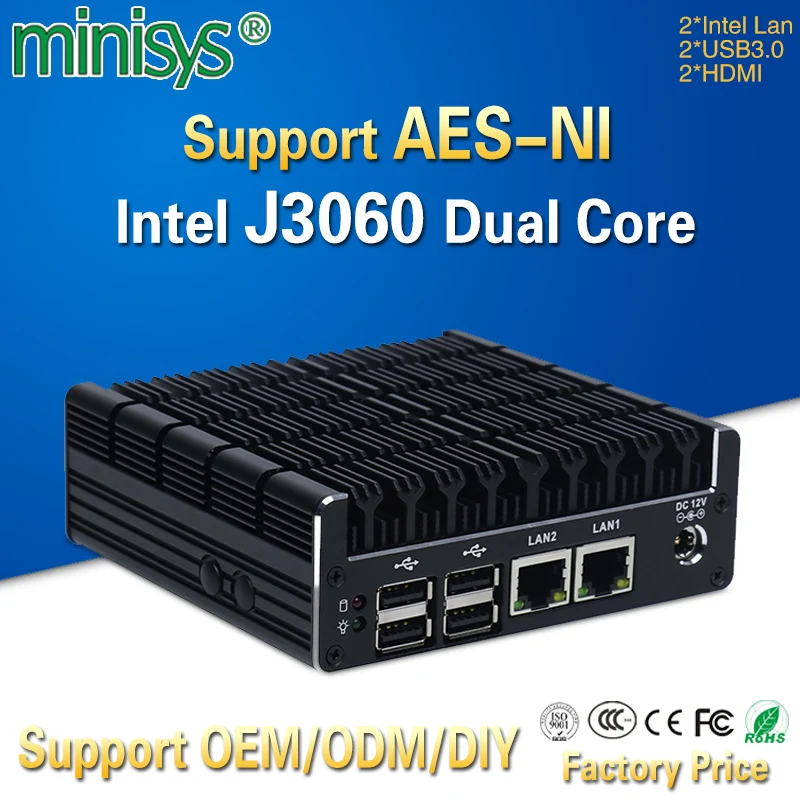 - Product name : Minisys Latest Intel J3060 Fanless Mini PC Dual Gigabit Lan NUC Case Barebones Computer Linux Suppo
